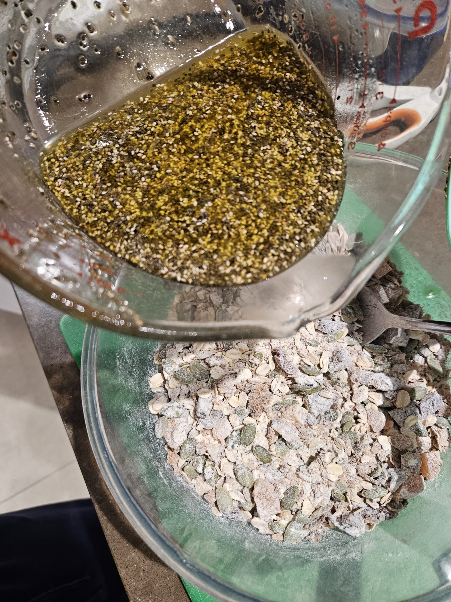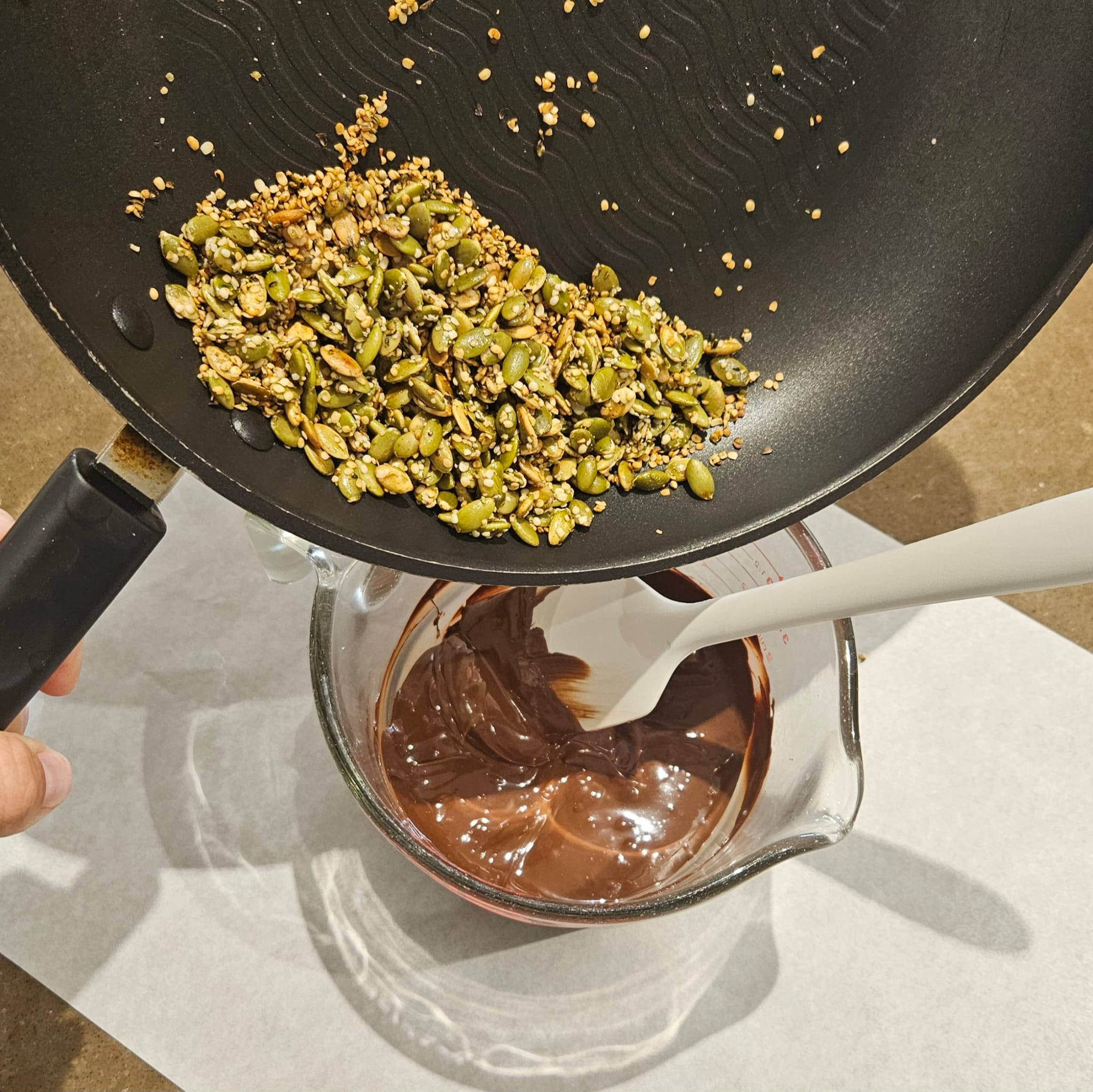 Tip the seeds into the melted chocolate and mix well. It helps if the seeds are still warm.