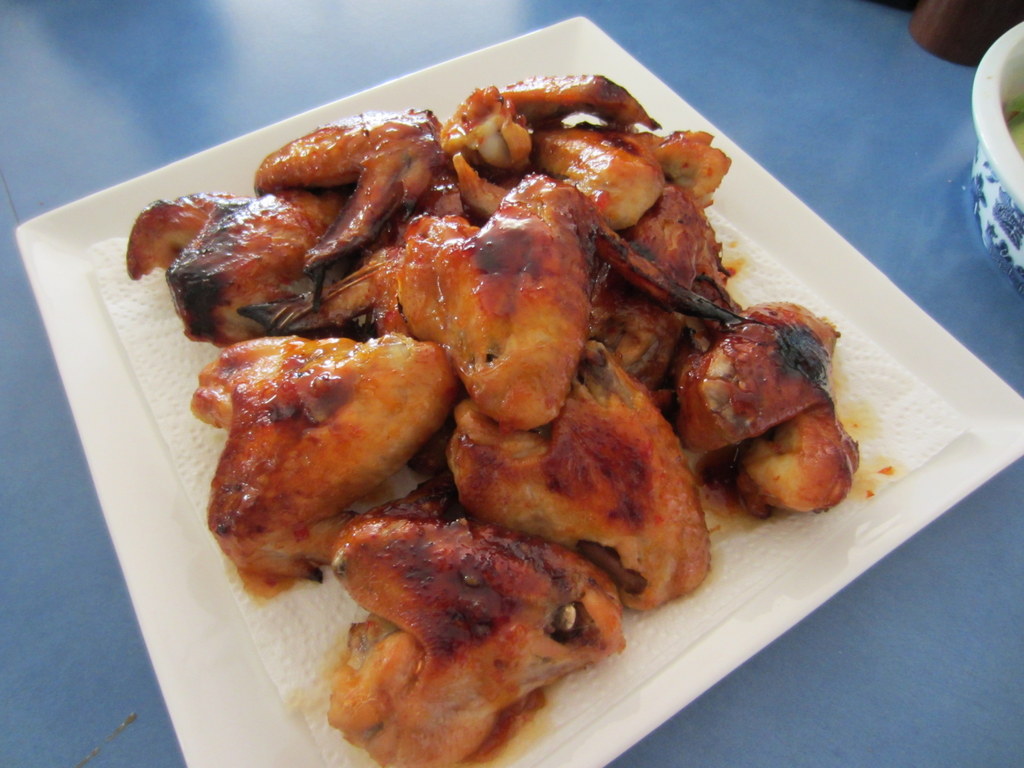 Place the chicken into a large, lined baking tray and transfer to a preheated oven. Cook at 200C for about an hour, turning the pieces after about 40mins and spooning the sauce from the bottom of the dish back over the chicken.