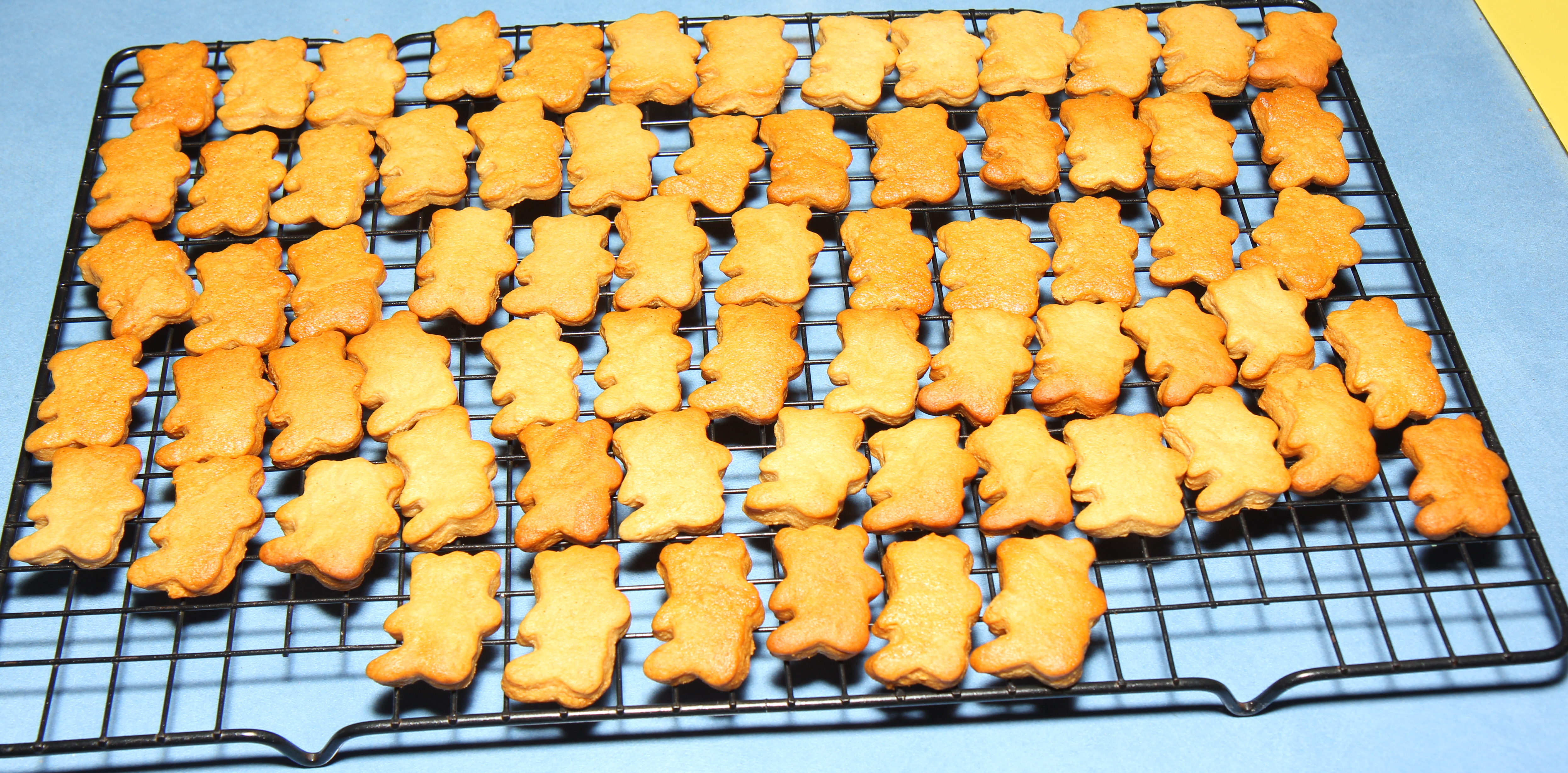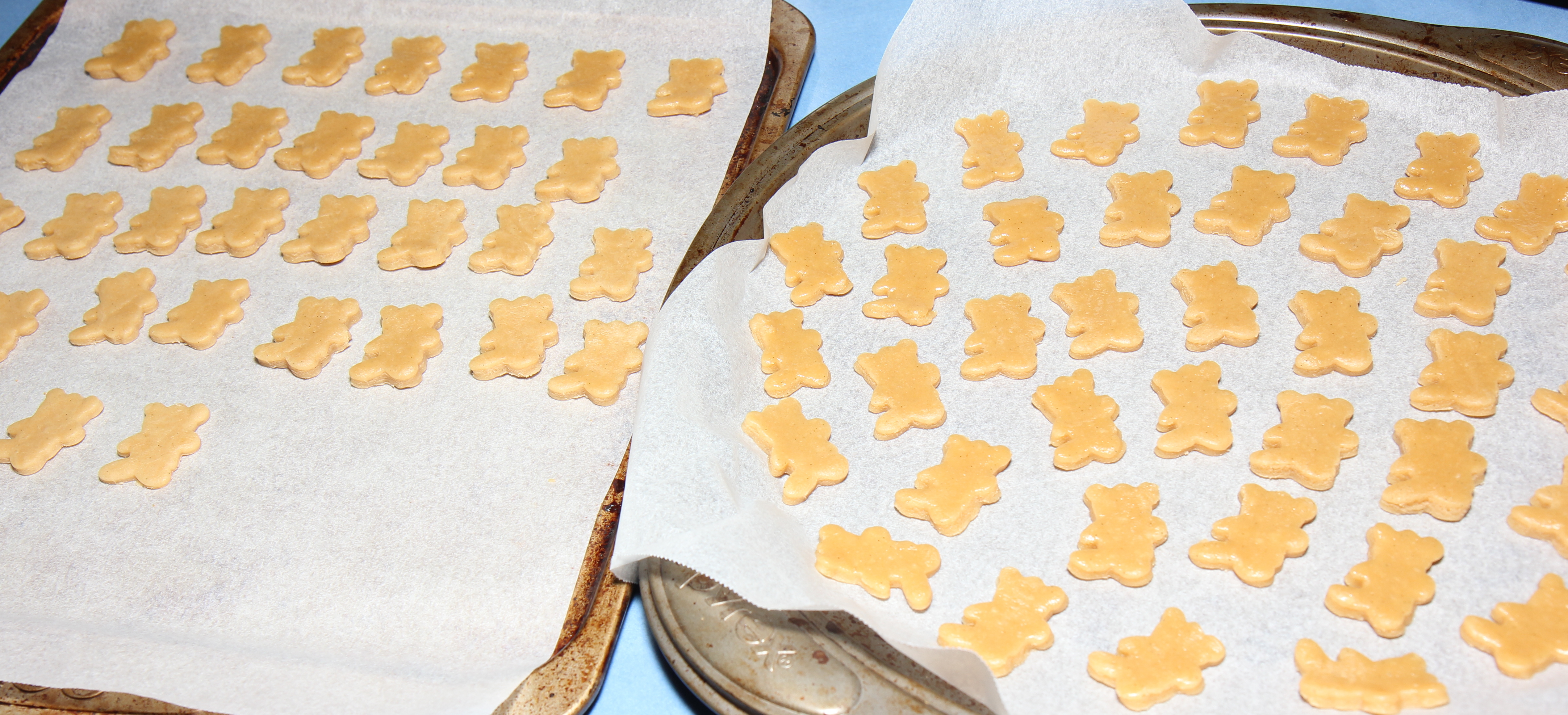 This is the most time-consuming part … Use a teddy cutter to cut the shapes and place on a lined baking tray.