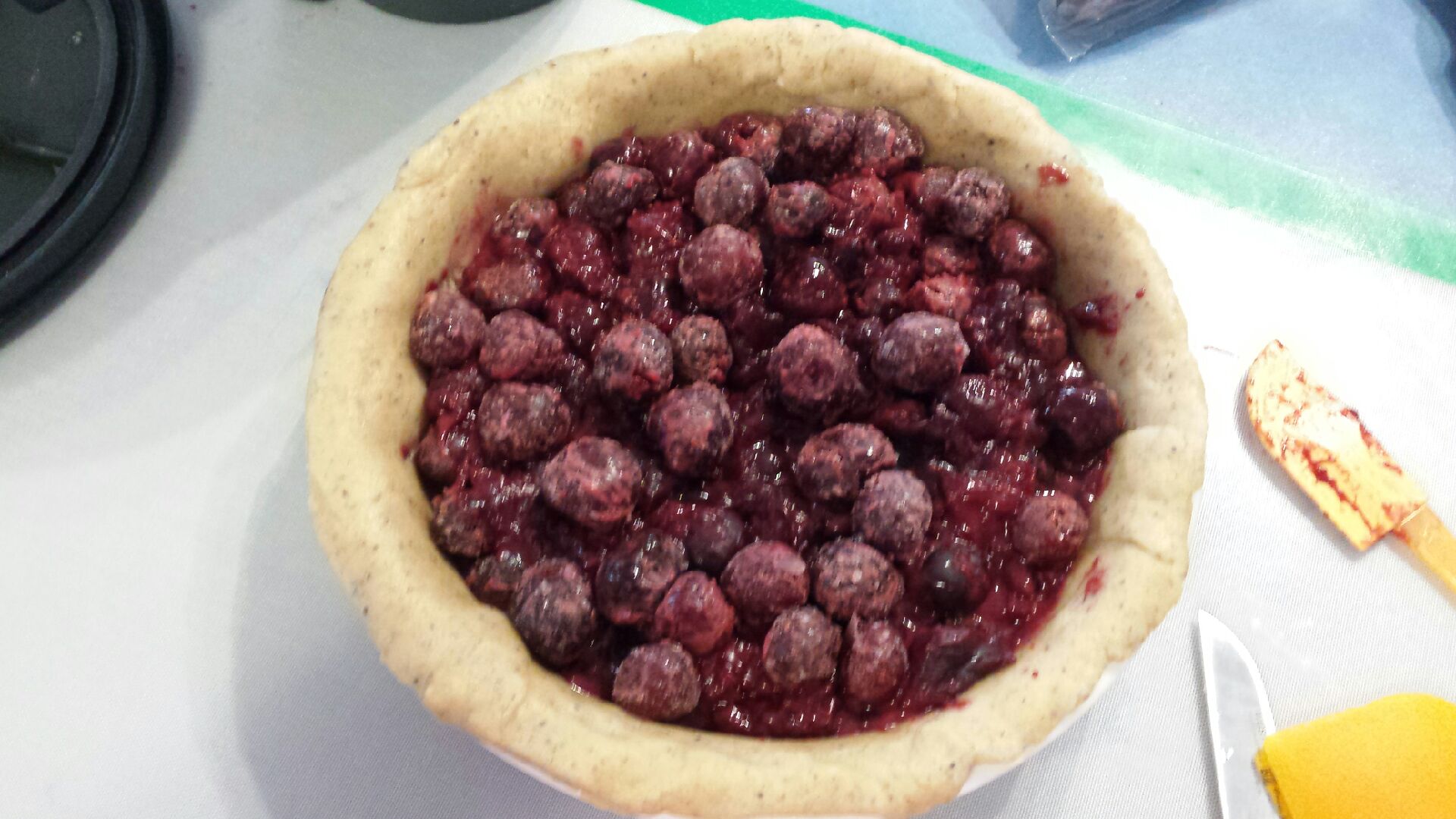 So, we had soy ice creams with gluten free cones, lollypops, watermelon, red sausages, a plate of vegan cheese together with gluten and dairy free salami and pickles (gherkins), banana muffins, chocolate cake (the birthday cake) and then cherry pie. I hadn’t ever made cherry pie before so it was my big challenge!