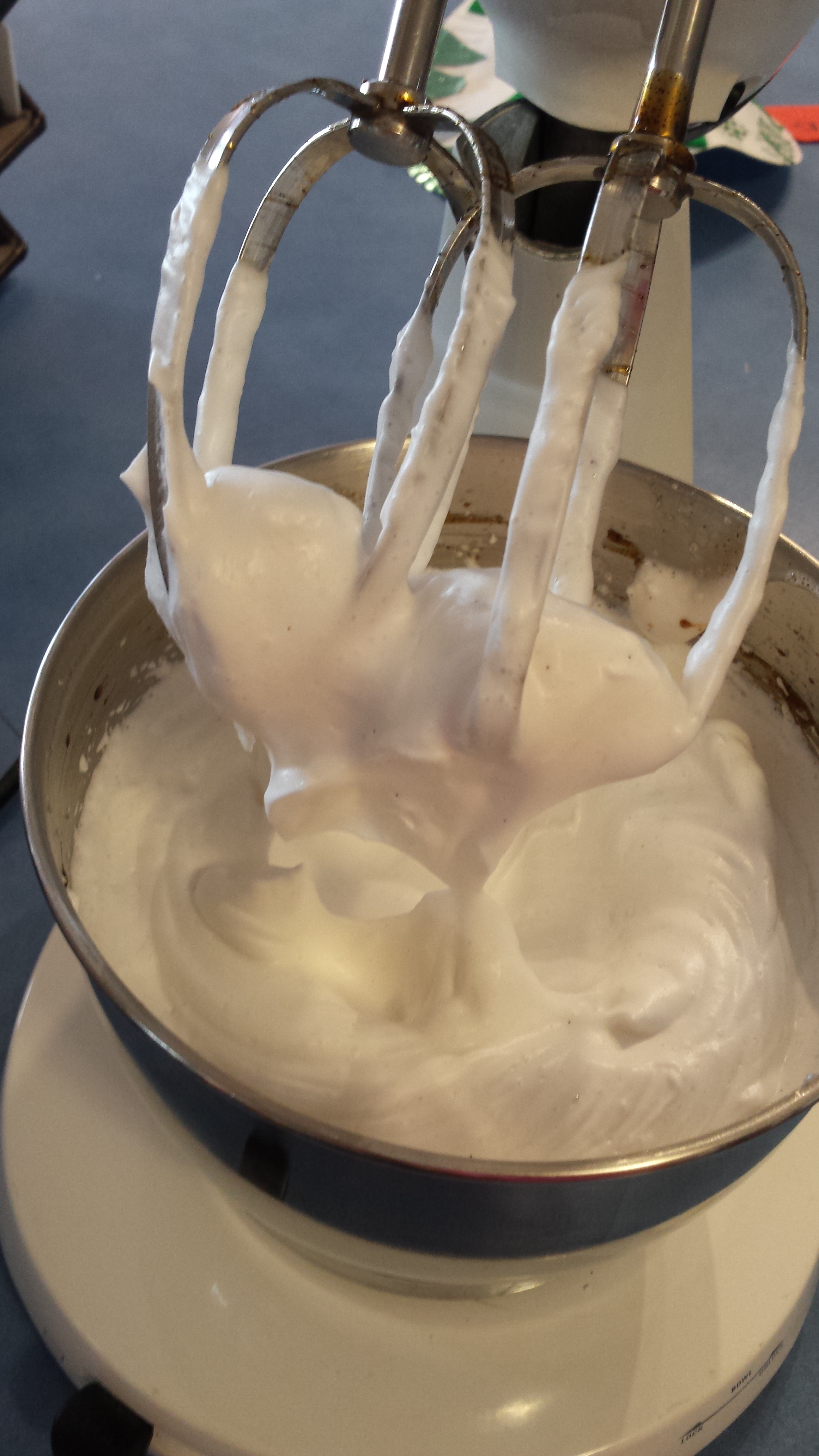 Add the cream of tartar and continue to beat until soft peaks form. This took about 5 minutes.