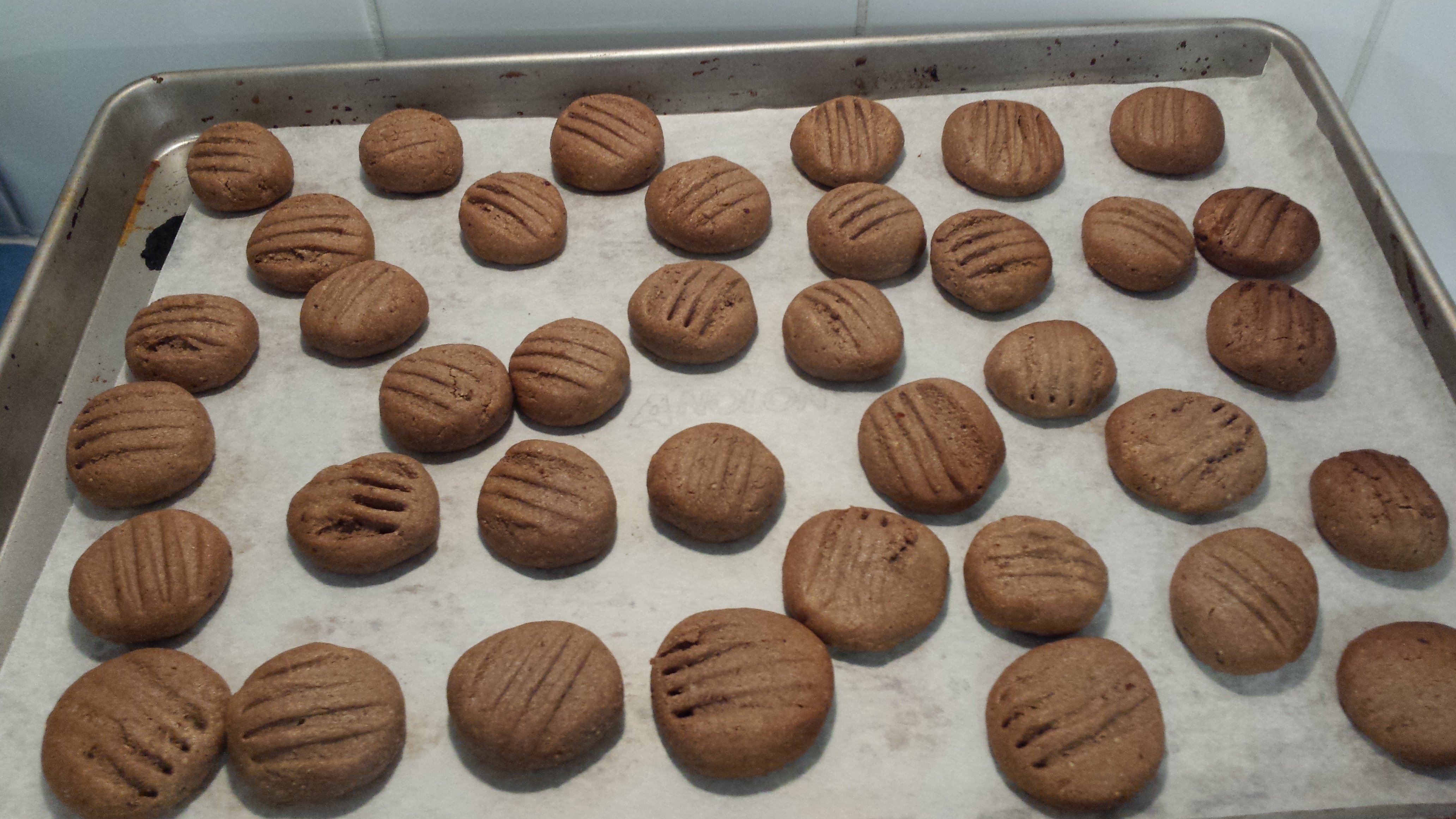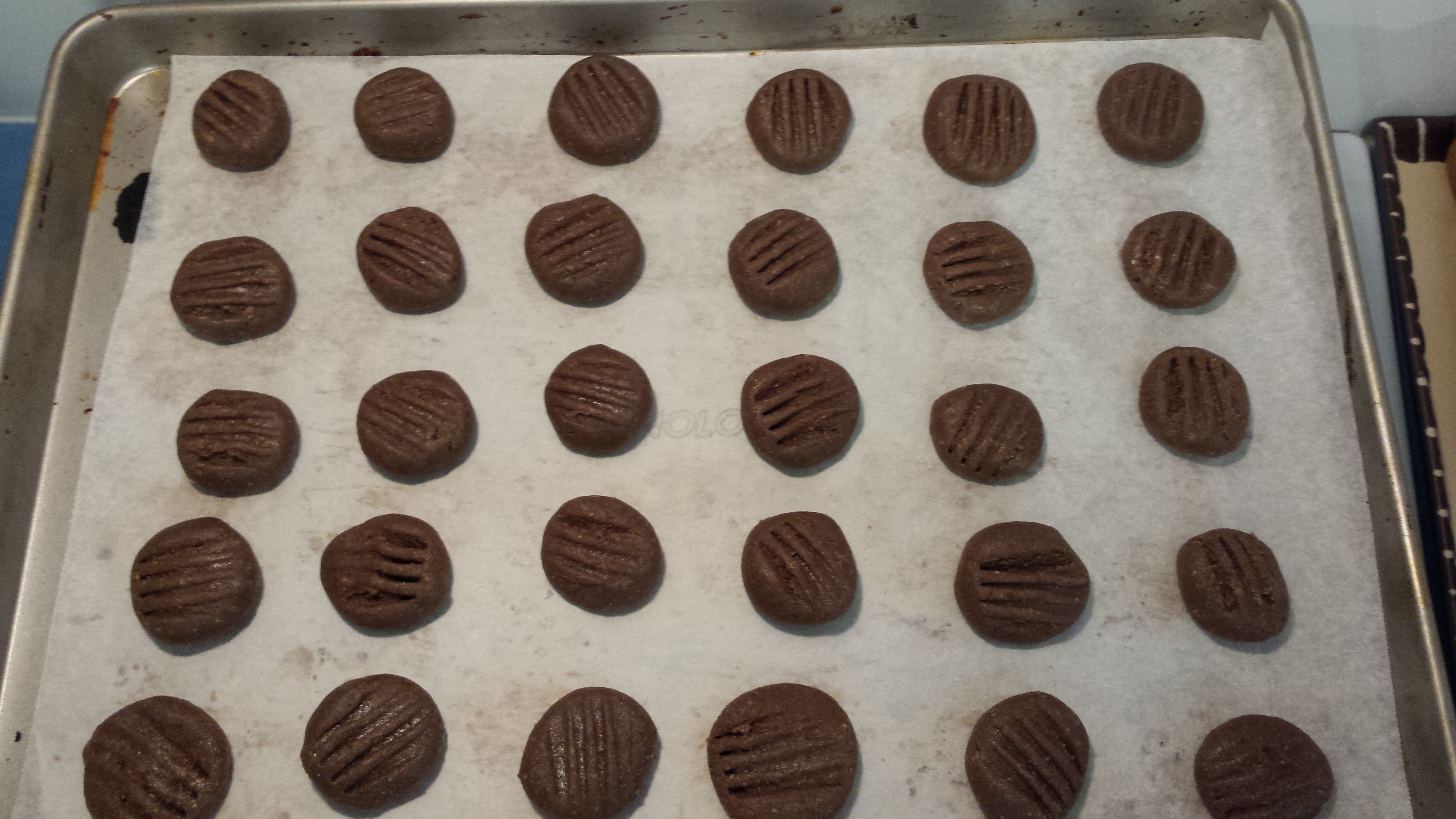 Place in a preheated 180C oven and bake for 15 minutes. They don’t spread out much, but do rise a little.