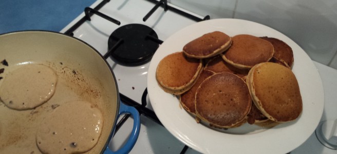 My preference for this recipe now is to use the Aquafaba because they give a lighter more ‘normal’ pancake. They also make the mix more liquid so it is easier to just pour into the hot pan.