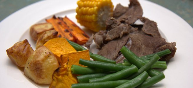 - 2 cups steamed veggies (green beans and corn or pumpkin and broccoli are popular combinations in our house, but you can use whatever your family enjoys)