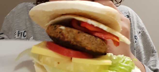 Mostly we go with a veggie burger patty but we mix it up sometimes with this chicken burger.