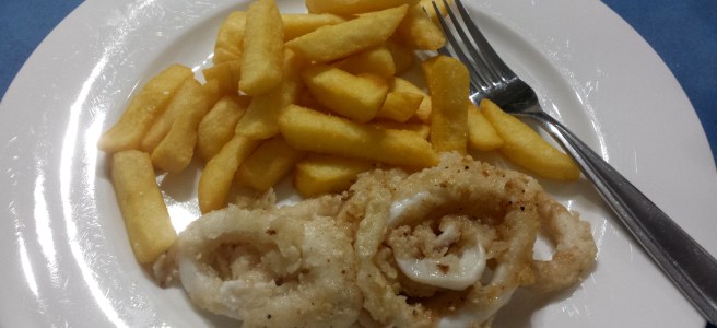 Place them pieces on a line baking tray, spray them with oil and sprinkle with the salt.