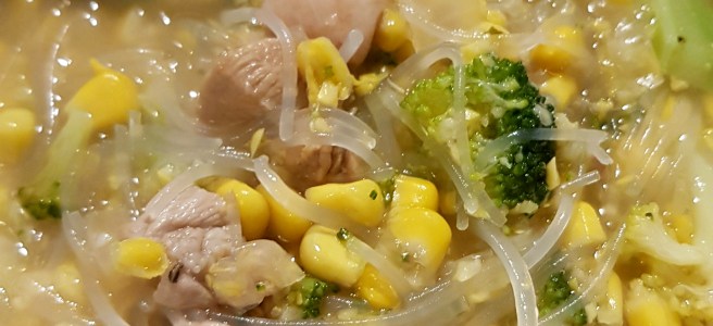Now add the soup and then boiling water.