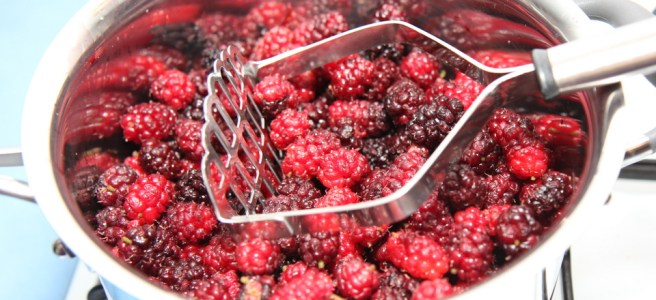 Crush with a potato masher. How much you crush depends on how smooth or lumpy you like your jam … I like some lumps so I didn’t mash too much.