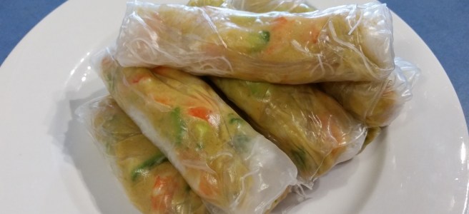 Soak your rice paper rolls according to packet instructions, then lay onto a damp towel.