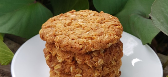 The biscuits were originally sent in care packages to troops far off because they were cheap to make, didn’t contain any eggs and they kept well for a long time – after the end of the war they were sold as a fundraiser and today they are the only commercial good allowed to carry the name of ‘ANZAC’. They are delicious and thankfully, very easy to make into an allergy friendly version – plus, you can be very flexible with them based on what you have in your pantry.
